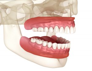 Dentures are removable devices that fit in the mouth in order to replace missing teeth. They are a very useful option, as they give the flexibility to replace one, many (partial denture), or all teeth (full denture) in an arch, with a single device.